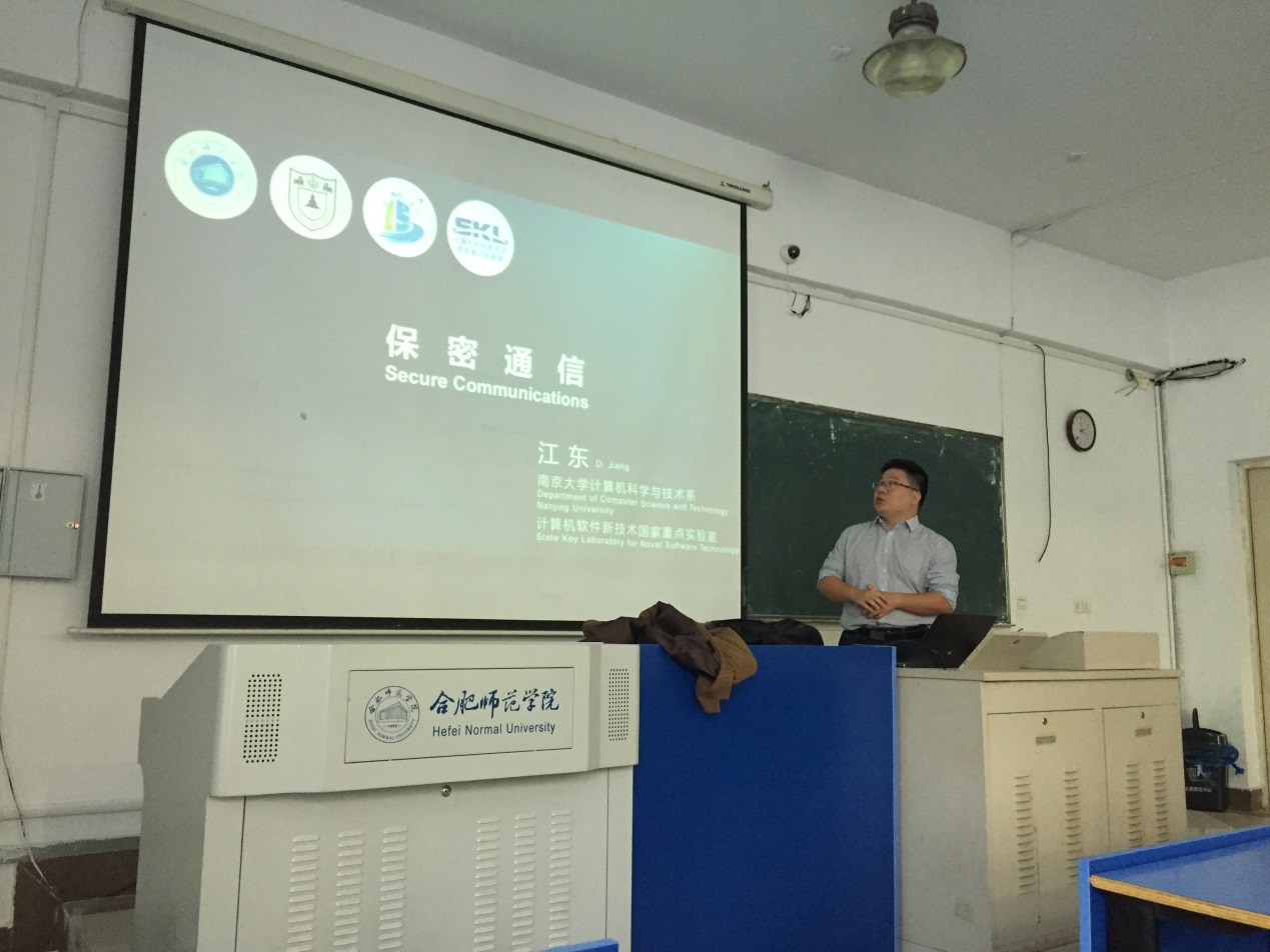 10月18日下午,南京大学江东博士应邀到我校计算机学院作题为“保密通信的研究与应用”学术报告,计算机学院郭玉堂院长主持报告会,计算机学院教师和相关专业学生参加了报告会。