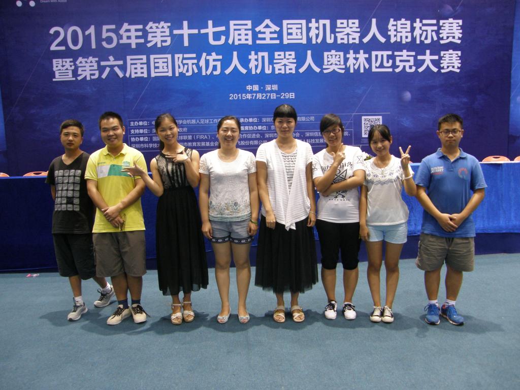 7月27日-29日,第十七届全国机器人锦标赛暨第六届国际仿人机器人奥林匹克大赛在深圳信息职业技术学院隆重举行。本次大赛共吸引来自同济大学、哈尔滨工业大学、四川大学、西北工业大学、合肥工业大学、河海大学等60多所国内高校的700多名大学生参赛。我校计算机学院史君华、程舒慧两位老师带领王启凡、单文静、李娴、潘长俨、汤文斌、潘加润6位参赛队员,分别参加了仿人机器人双人舞、短跑、长跑、阶梯跑、障碍跑、点球等9个项目,经过激烈角逐,最终摘得仿人机器人“阶梯跑”项目桂冠,并在其他项目中荣获2个二等奖和5个三等奖,为学校争得了荣誉。