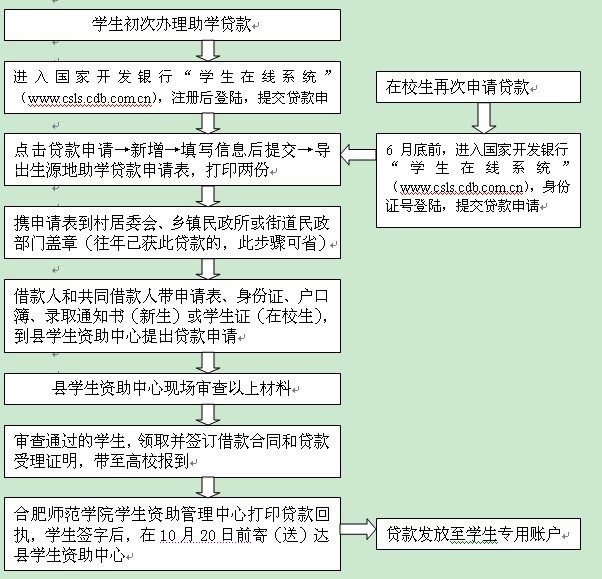 办理国家开发银行生源地信用助学贷款流程图