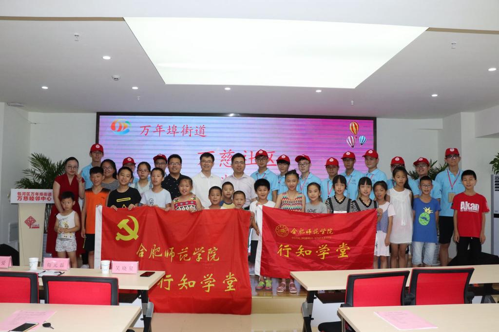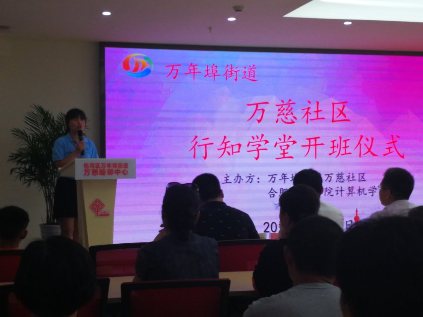 7月12日上午,计算机学院行知学堂“小先生”们来到合肥市滨湖万慈社区,正式开始了为期20天的“行知学堂”暑期社会实践活动。上午9:30,万慈社区在睦邻中心居民议事厅举办了隆重的开班仪式,万慈社区党支部书记荀元磊、副主任郭爱,计算机学院分团委负责人吴晓星、“小先生”和慕名前来的家长、孩子等近百人参加了开班仪式。