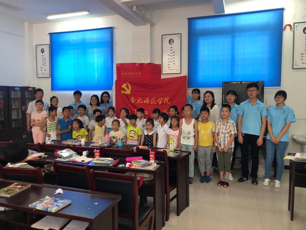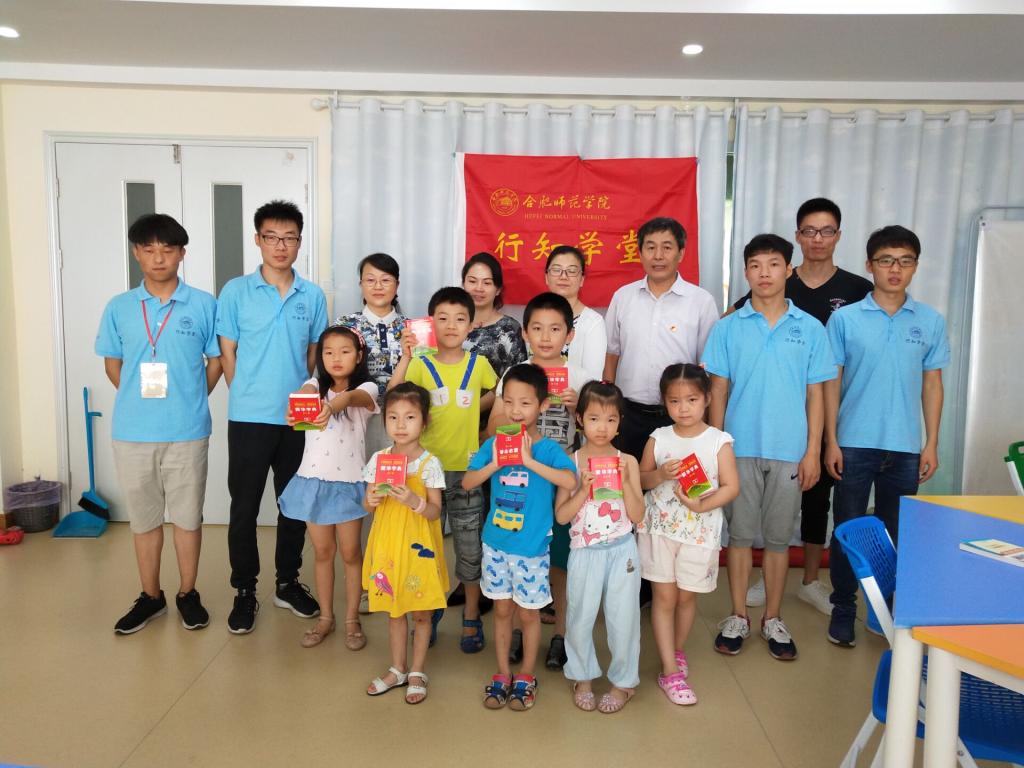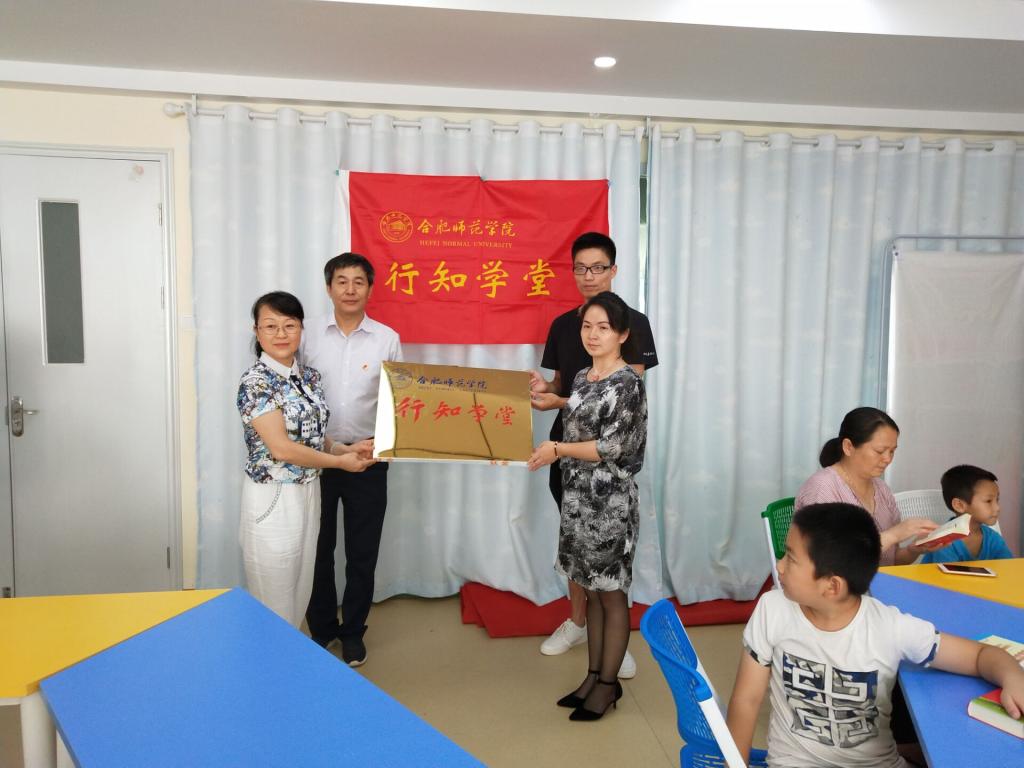 领导老师们的到来受到了当地街道、社区领导的热烈欢迎。大家走进宽敞明亮的教室,孩子们正在“小先生们”的指导下认真地上着课。看到合肥师范学院的老师们来了,孩子们很开心。老师们与家长、孩子们亲切地攀谈起来,家长和孩子们也一一回答,现场气氛轻松欢快。大家还向孩子们分发了《新华字典》、笔记本、水笔等图书文具。其中,始信居委会的“小先生们”还带来了精彩的机器人舞蹈表演,吸引了孩子们的目光。