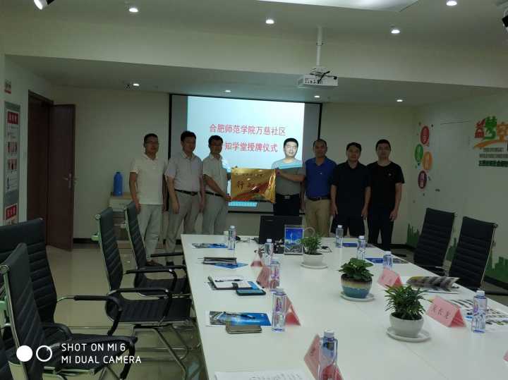 现场,还进行了简短的行知学堂挂牌仪式。滨湖万慈社区还举办了校地共建座谈会,座谈会上吴长龙、谢飞等同社区领导和工作人员就长期结对共建进行了交流,并在悬挂着“行知学堂”的旗帜前合影留念。
